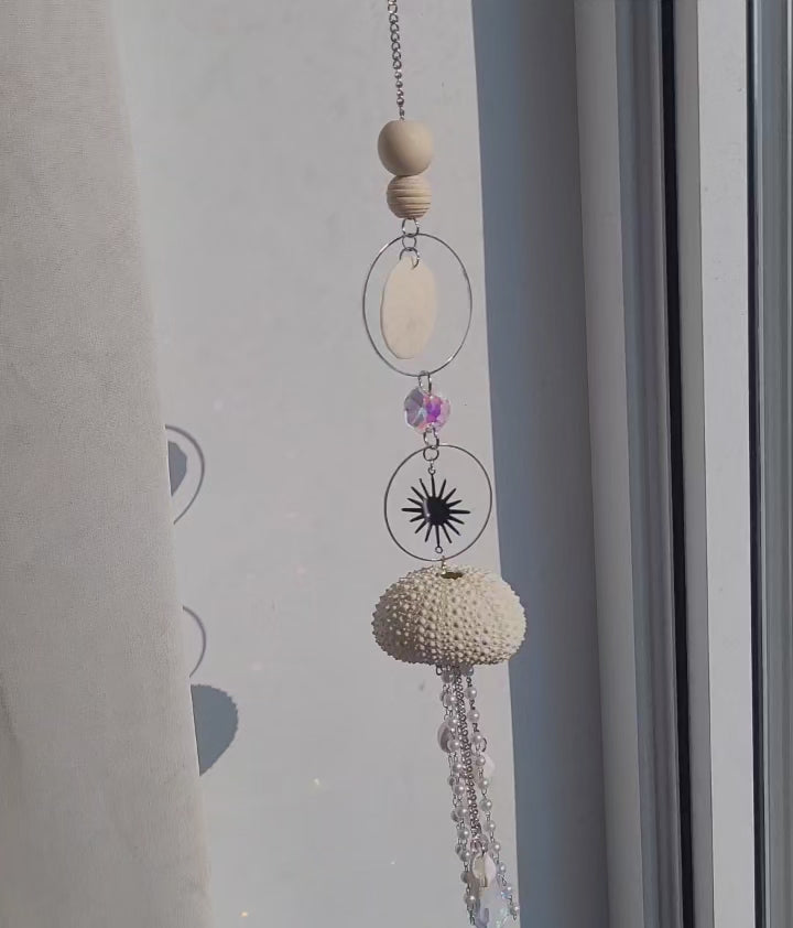 Matériel: Chaîne (Argent), coquillages naturels (dollar de sable et oursin)
